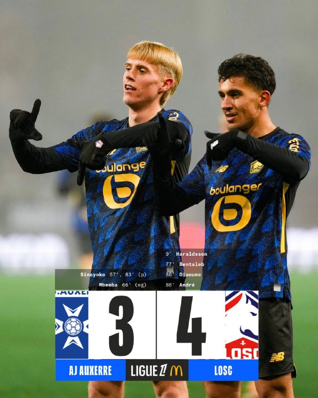 🇪🇺در چهارچوب هفته 14 لیگ 1 فرانسه، لیل برابر اوسر در دیداری جذاب که 7 گل و داشت و دو تیم مسابقه را 9 نفره به پایان رساندند پیروز شد.