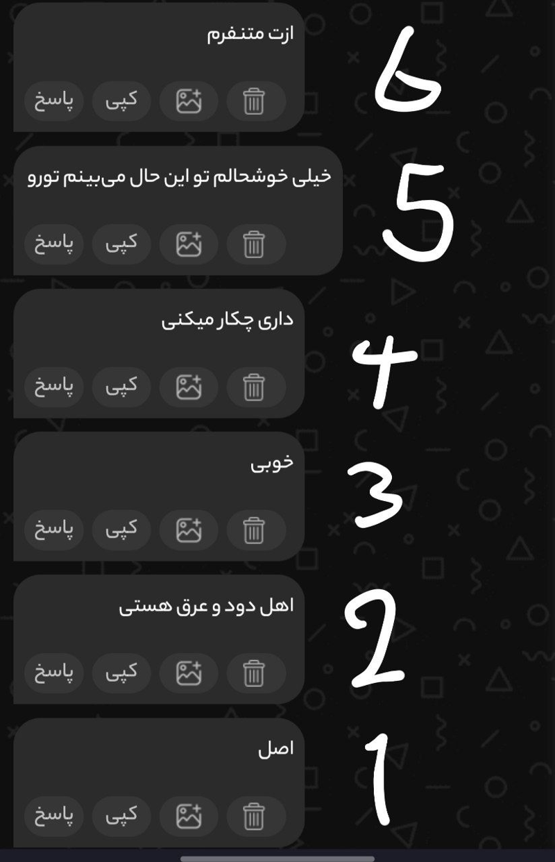 3. چقد ازم میترسی؟ نه پیوی میای نه خودتو معرفی میکنی با چت های فیک میری پشت من بد میگی داستان چیه؟😂😂