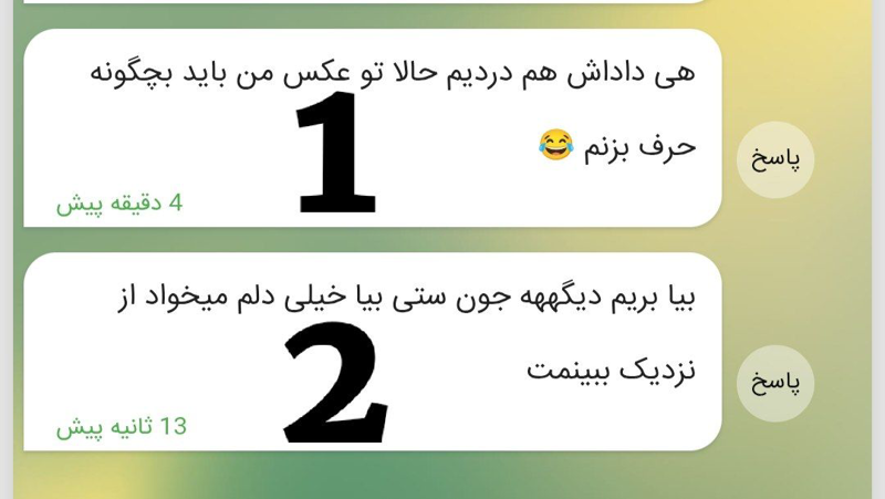 1. جز من دو تا امیر دیه داریم بیا پی ایدیشو بده بگم امشب بره😂